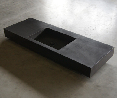 Beton Ciré wastafel B 100 x D 48 x H 10 cm. Deze maatwerk wastafel van beton Ciré, met zijn robuuste industriële look is in vele maten en modellen verkrijgbaar. daarbij is een groot voordeel dat Beton Ciré ook in vele kleuren verkrijgbaar is.